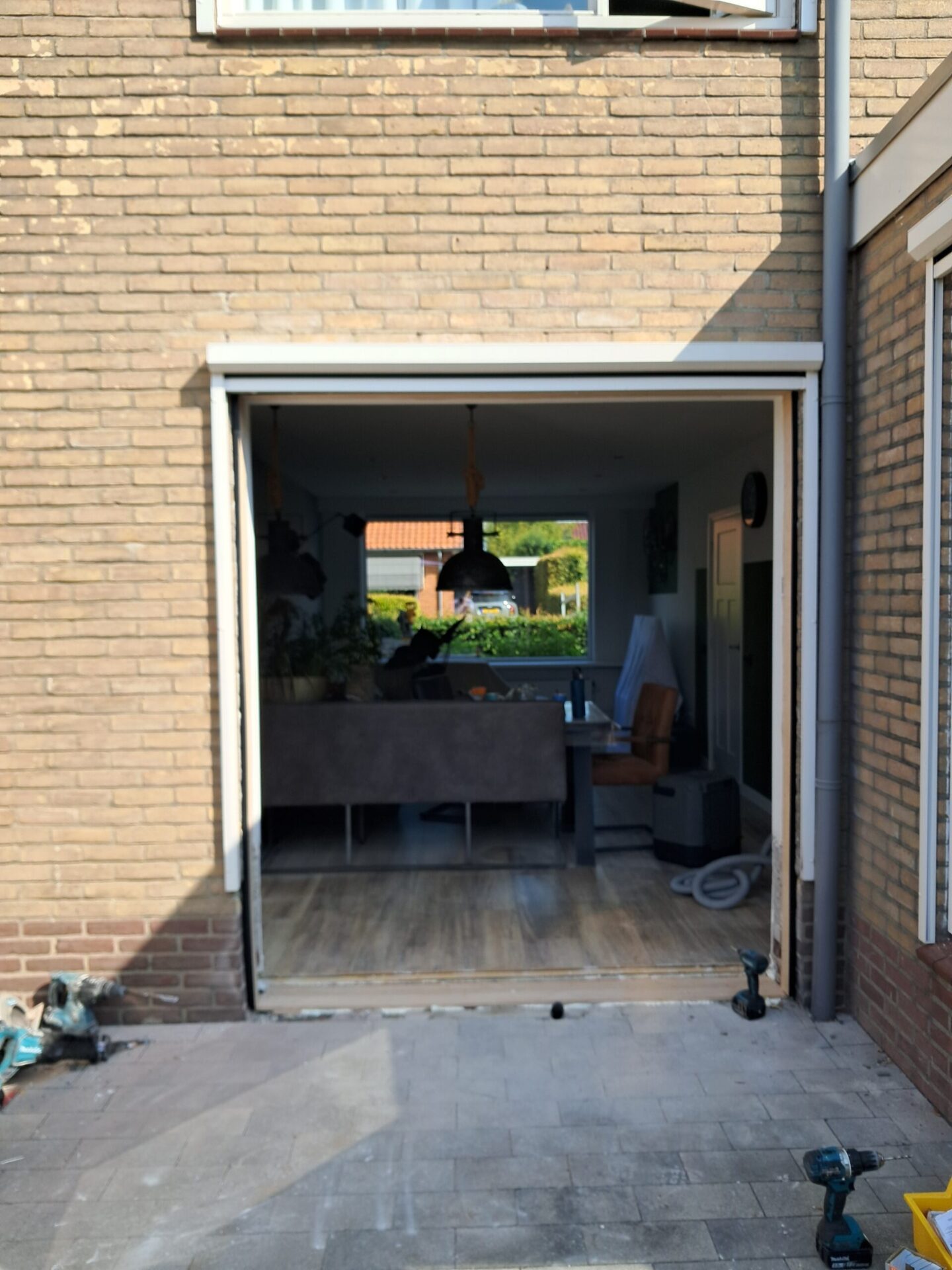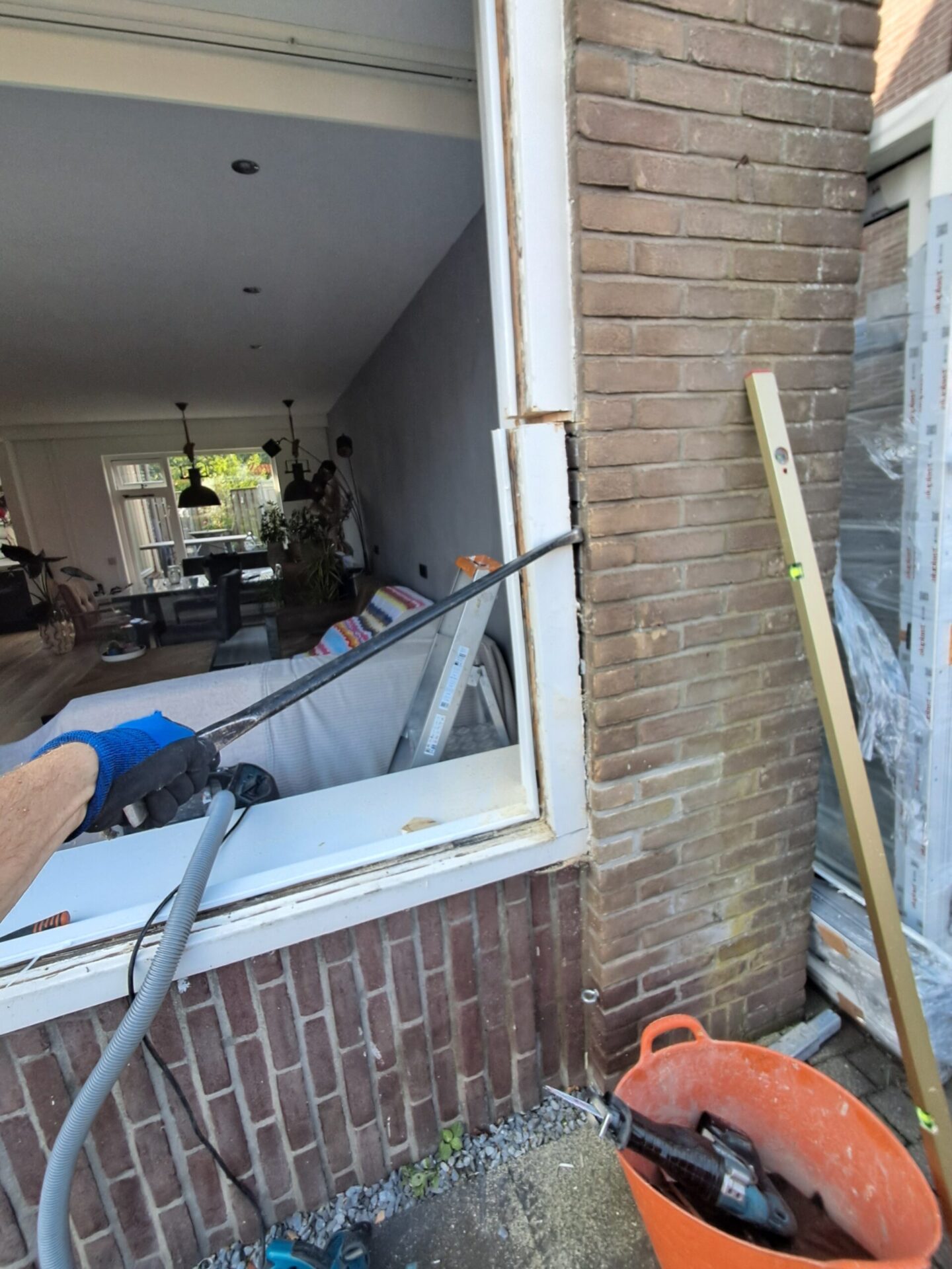 Door het juiste gereedschap kan in veel gevallen aan specifieke wensen van klanten voldaan worden. Zo wilden deze klanten van het bestaande raam graag een schuifpui maken, waardoor je gemakkelijk toegang hebt tot de tuin.