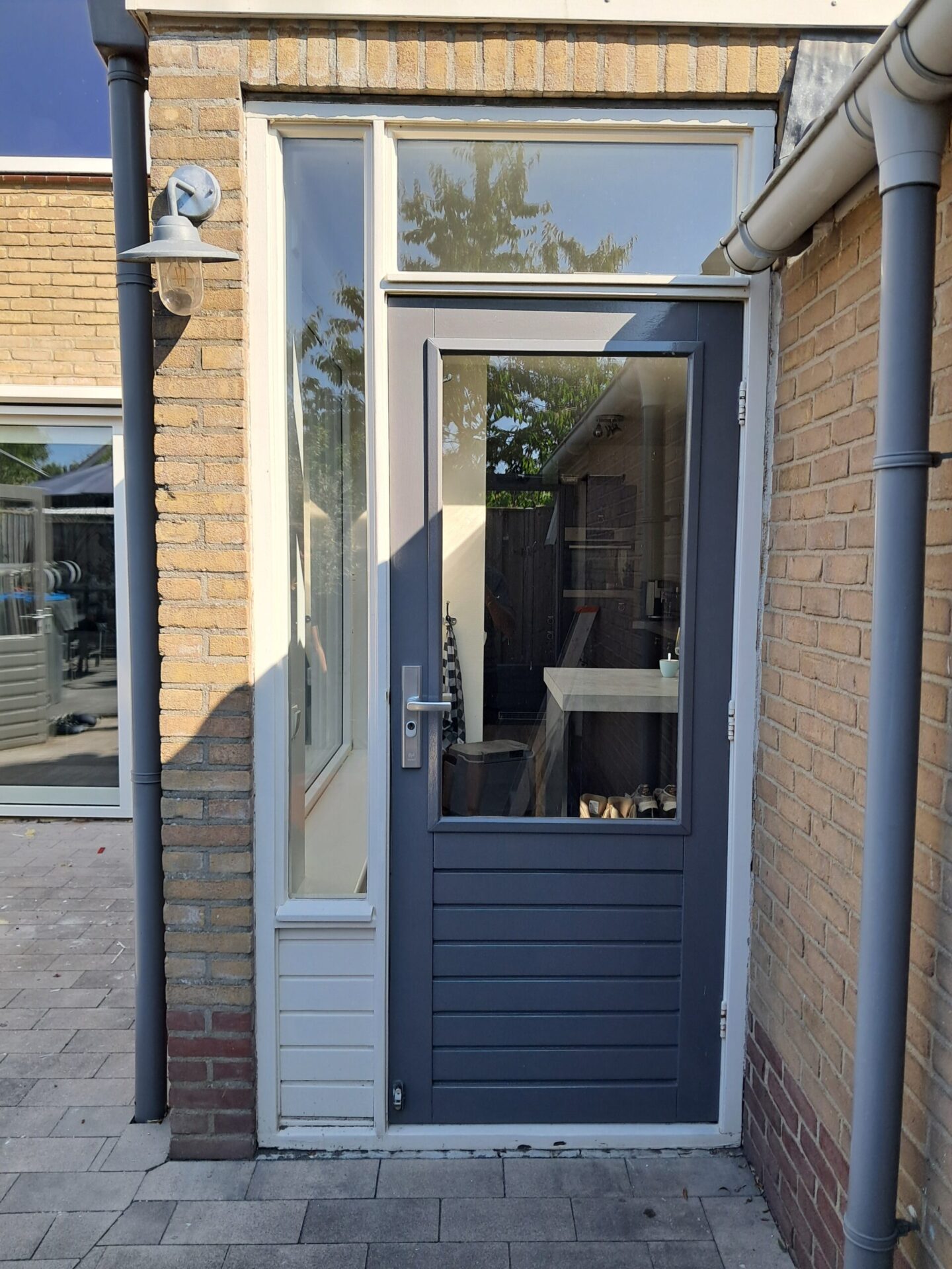 Bij de nieuwe achterdeur is er in het boven glas een ventilatierooster geplaatst en is de deur voorzien van een gelijk sluitende knopcilinder.