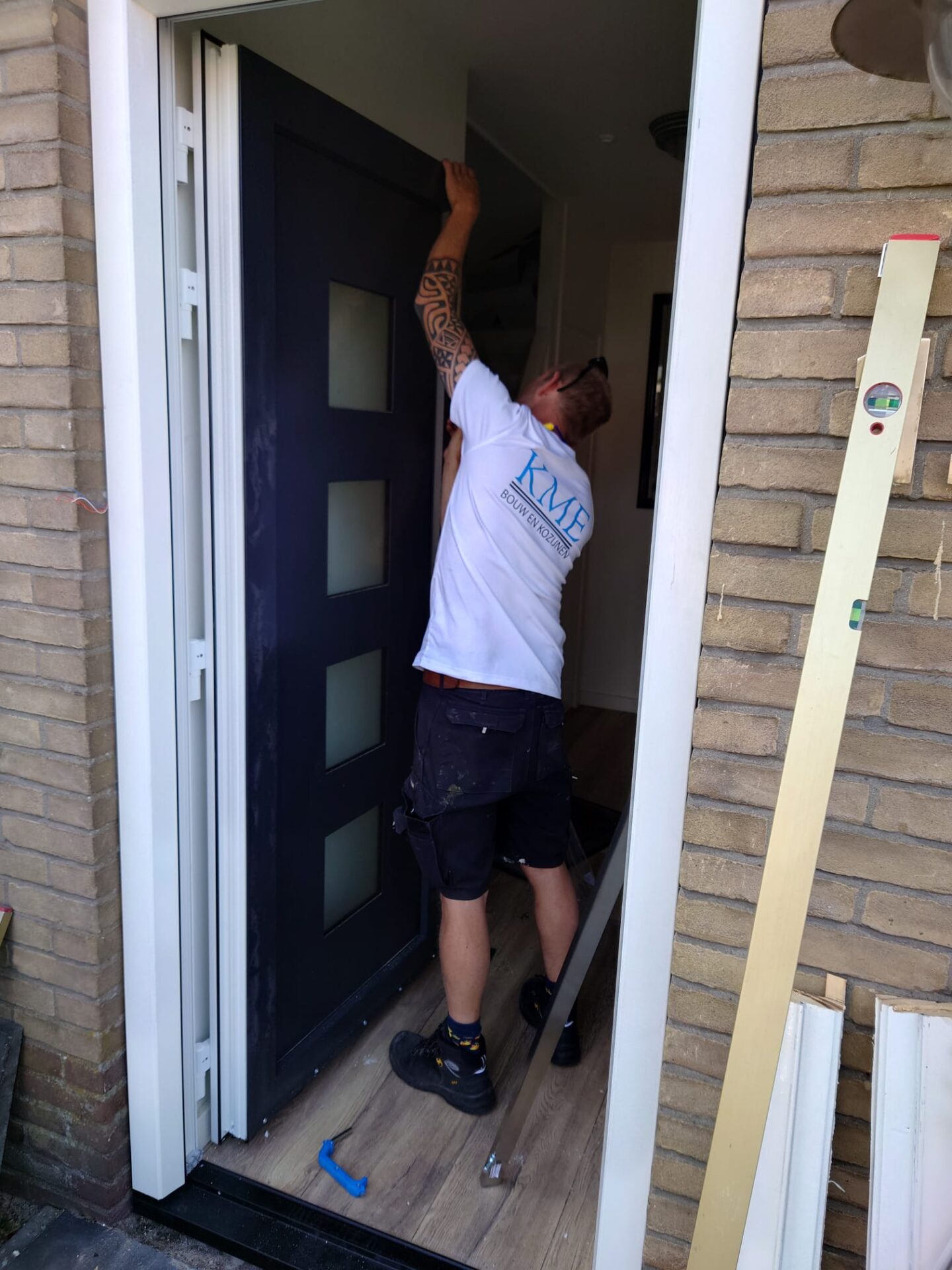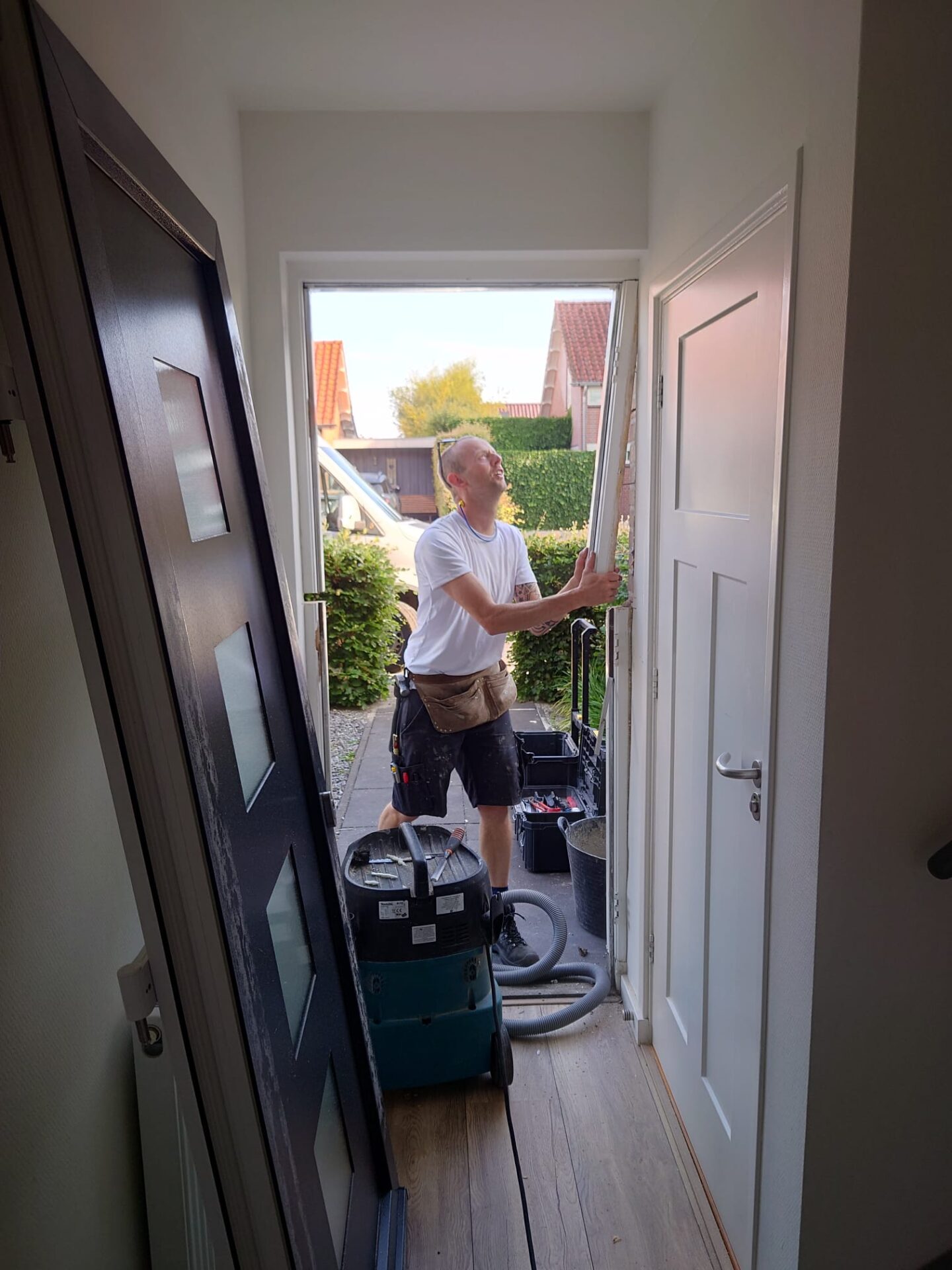 Het plaatsen van de nieuwe voordeur